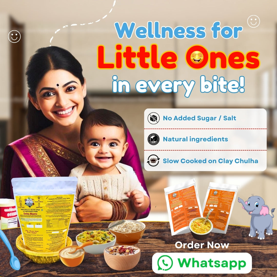 "Experience India's only 100% traditionally made baby food, crafted with ancient Ayurvedic methods to ensure maximum nutrition from farm to plate."
